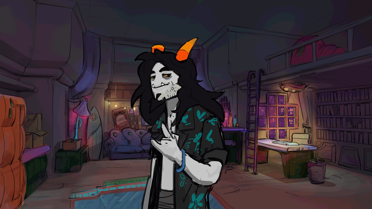 some of the sprites are in sketchy stages. Or the backgrounds are messily colored.The first 3 examples show 3D based background, which is to say that I create a 3D mockup of the background environment and draw on top of it to create more 'real' and 3-dimensional looking spaces. These require more effort, for a better result.